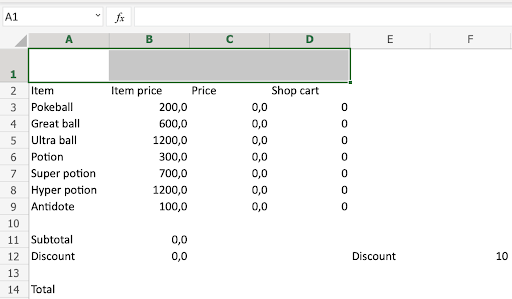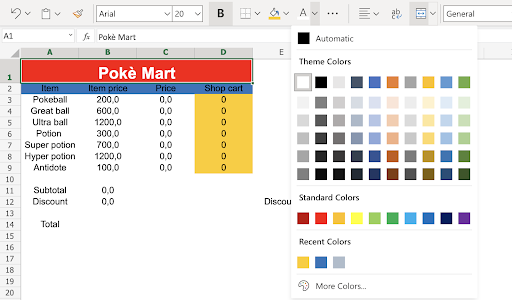 A1:D1(click the merged range) - Type Poke Mart
