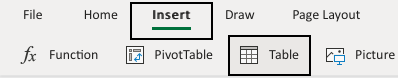 - Click Insert, then Table (