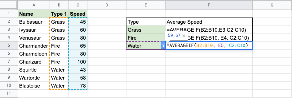 Google Sheets AVERAGEIF Function
