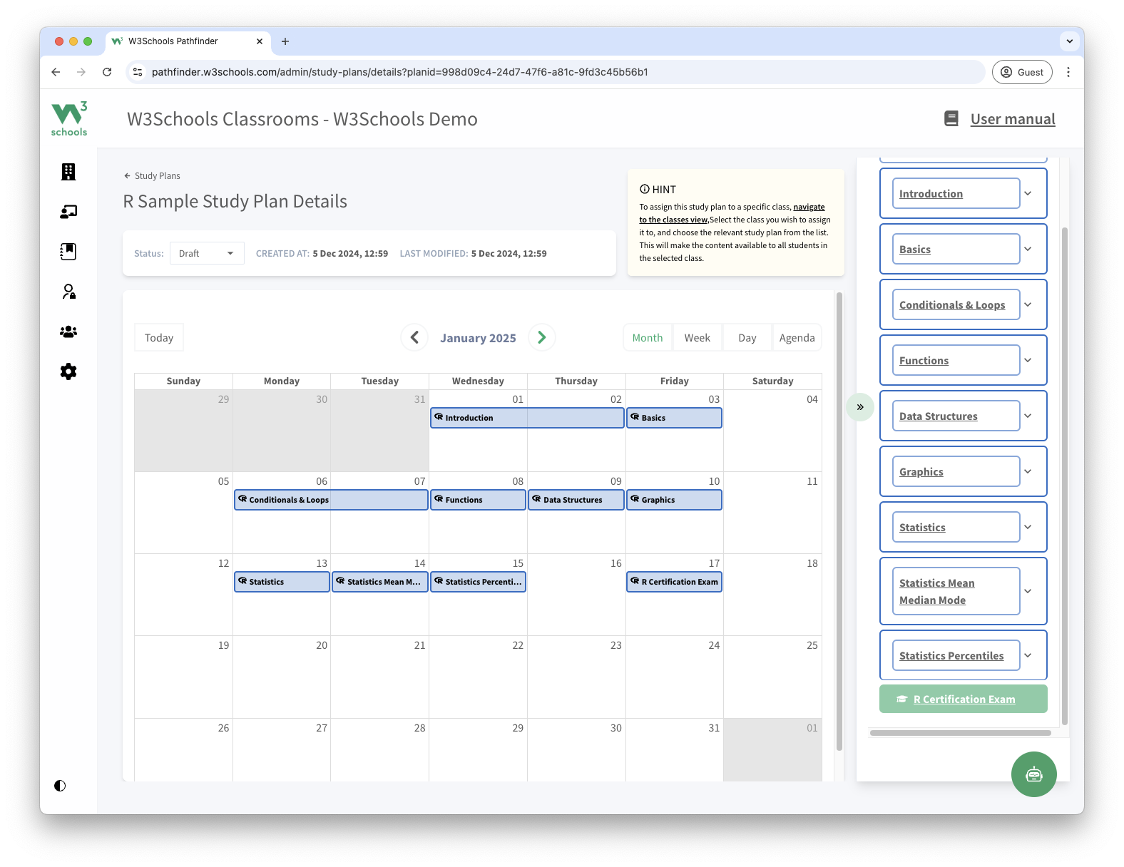 This study plan is a feature of W3Schools Academy.